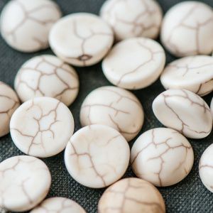кабошон бирюза синтетическая, круглый, цвет античный белый, 10x4 мм