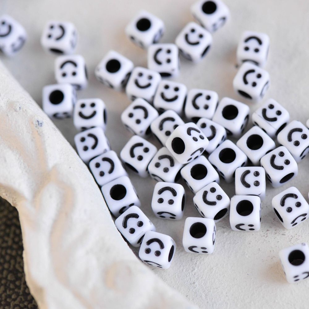 Бусина, акрил "Кубик-Смайлик", цвет белый/черный, 6x6x6 мм