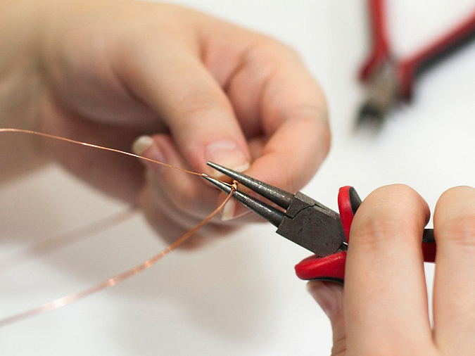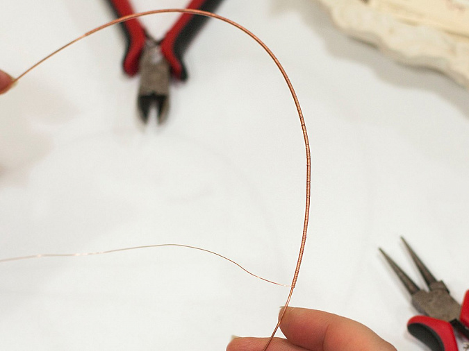 3. Когда кусок тонкой проволоки подошел к концу, нужно аккуратно круглогубцами пригладить его к толстой проволоке, чтобы он не цеплялся в дальнейшем.