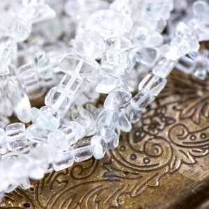 12. Нанизываем бисер, для крепления тросика использую кримпы: кримп зажимаем плоскогубцами, короткий кончик тросика спрячется под хрустальной крошкой бисерной части.