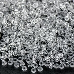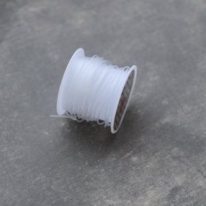 1. Отрезаем 10-15 см. лески. Нанизываем четыре маленькие бусинки, располагаем на середине.