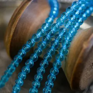 3. Проходим одним концом лески в ближайшую бусину и тянем за него так, чтобы узелок переместился внутрь этой бусины.