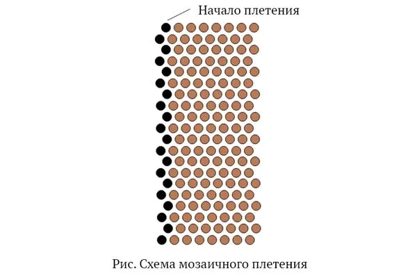 16. Теперь перейдем к основе, на которой будут держаться наши веточки. Плетем мозаичным плетением прямоугольник по схеме ниже.