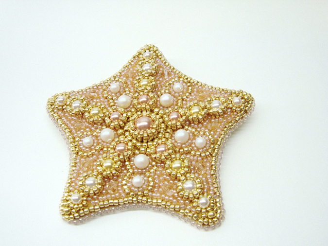 Брошь-кулон «Морская звезда» из жемчуга и бисера