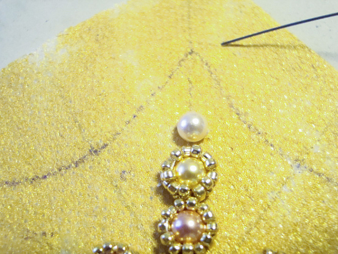 • 23. За розовым вышиваем золотой ряд вокруг этих жемчужин.