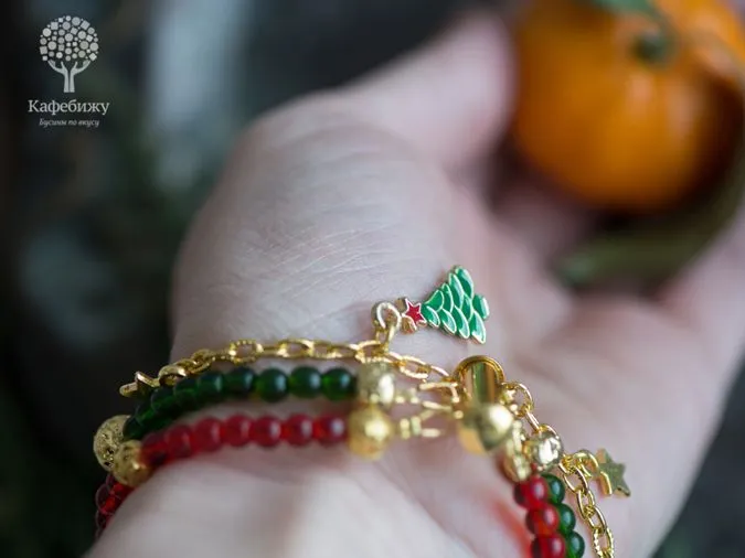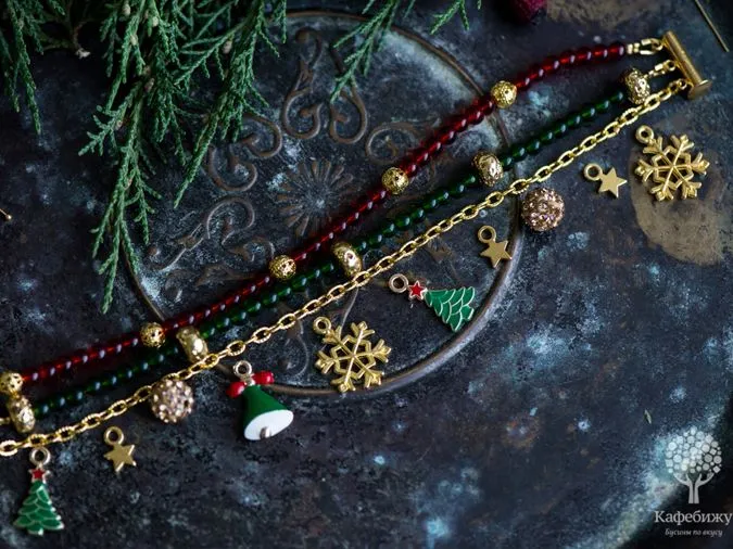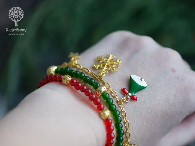 Сегодня будем создавать браслет на новогоднюю тему - с елочками, звездами и снежинкам!. Он очень яркий и точно создаст новогоднее настроение в преддверии праздника.