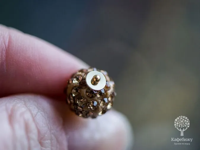 • 11. Маленькая хитрость: если в бусине слишком большое отверстие и пин с шариком проскакивает через него, то можно проложить между ними пайетку в тон бусинке (или сразу несколько). Ее почти не видно. Можно также использовать различные разделители или шапочки