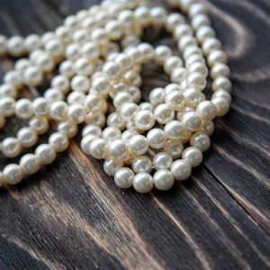 1. Для начала оденем на пины необходимое количество бусин (бусины 8 мм – 14 шт., бусины 4 мм – 22 шт.): оденьте бусину на пин.
