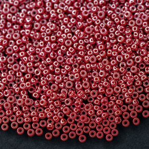 • 13. Нанизываем 2 красные бисерины, 3ю бисерину проходим двумя концами лески. Далее по 1 красной бисерине на стороны – и снова проходим двумя концами лески в одну бисерину