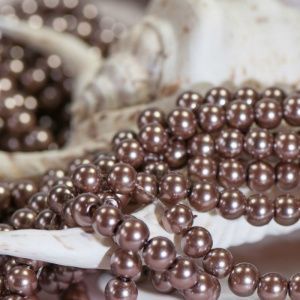 4. Далее начинаем нанизывать бусинки: 1 жемчужная бусинка, 1 перламутровая бусина, 1 жемчужная и т.д. Доходим до конца проволоки и делаем петлю.