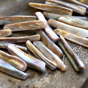 6. Используем нижнее (второе) отверстие перламутровых бусин. Мемори-проволка будет гнуться, это не страшно. Поэтому мы берем проволоку толщиной не более 0.7 мм, с более толстой проволокой мы не сможем сделать второй ряд. Доходим до конца и делаем петлю.