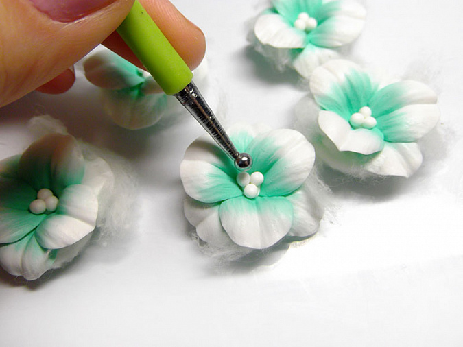 • 21. Из белой пластики скатайте круглые мячики диаметром 4мм. По 4 шт для каждого цветка.