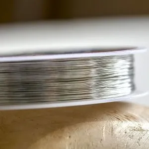 • 23. Серебристую проволоку толщиной 0,4мм разрежьте на части по 10см каждая. Согните их пополам и скрутите половинки друг с другом. Их нужно около 30 штук.