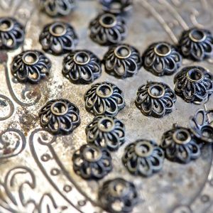 • 29. Соединяем филигрань цветок и получившийся элемент: продеваем леску сквозь филигрань и середину кольца