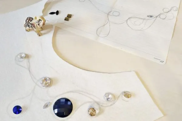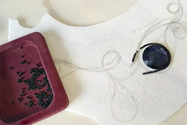 10. Оплетаем риволи согласно нашим наброскам и пришиваем их на свои места.