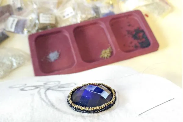 4. Далее я сделала третий ряд, серого цвета и закончила на этом, убедившись что бисерины хорошо держат кабошон на месте.