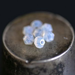 1. Собираем на пины два звена: большое - один большой биконус с двумя разделительными металлическим бусинами, двумя маленькими биконусами и двумя бисеринами; маленький - набираем столько бисера, чтобы длина этого звена равнялась длине большого.